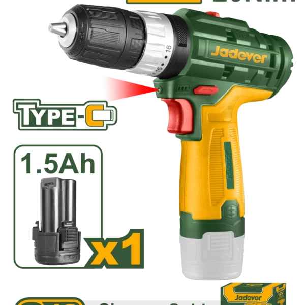 شنيور 12 فولت 20 نيوتن مع بطارية (تايب سي) – TDLI12456