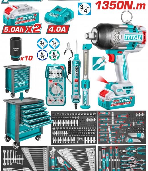 دولاب عدة 288 قطعة مع دريل 1350 نيوتن – THPTCS82882 توتال تولز