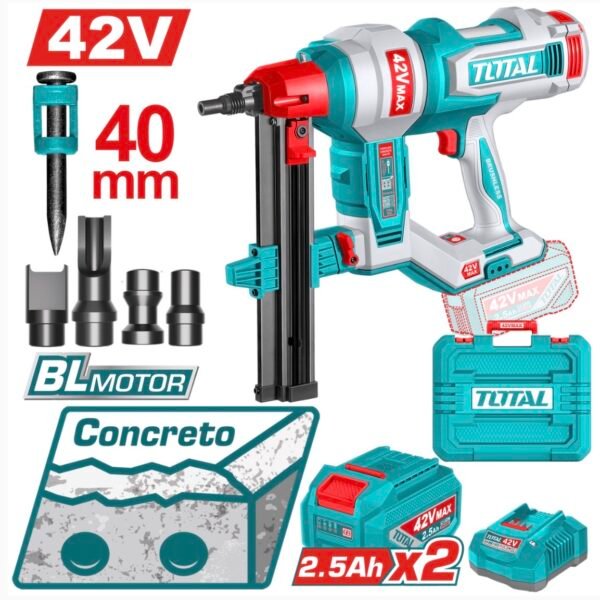 دباسة خرسانة 42 فولت 40 مم مع بطارية و شاحن – TCNLI420602 توتال تولز