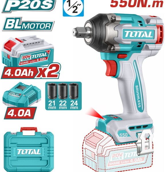 دريل 20 فولت بدون شربون 550 نيوتن 2 بطارية 4 أمبير توتال – TIWLI2055