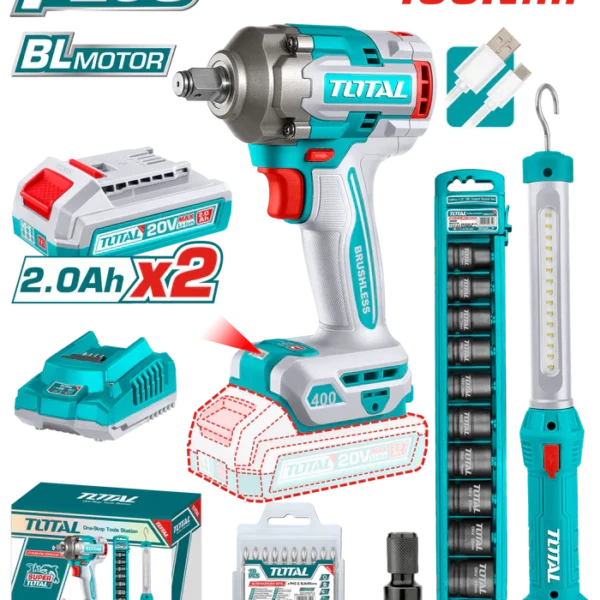 طقم كومبو توتال 20 فولت شنيور توتال 52 نوتن + صاروخ توتال ميني 3 بوصة + 2 بطارية 20 فولت 2 امبير – TCKLI20278