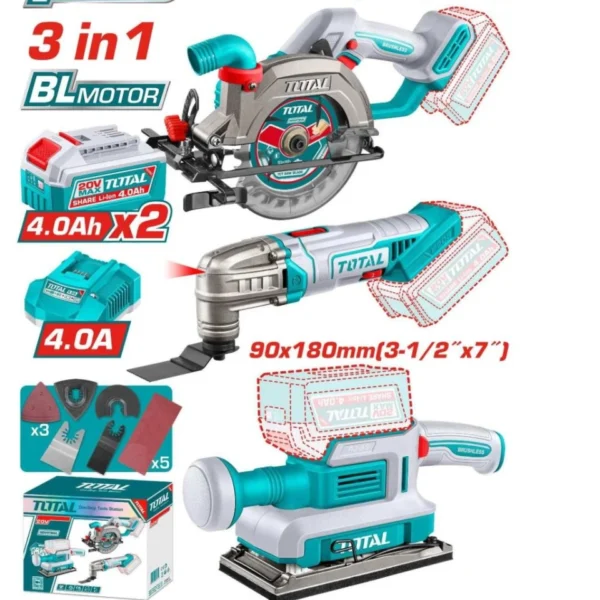 طقم كومبو توتال 20 فولت 3 قطع منشار صينية و صاروخ متعدد و صنفرة – TOSLI250781
