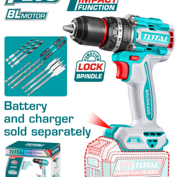 دريل توتال 20 فولت بدون شربون 500 نيوتن بدون بطارية و شاحن – TIWLI20501