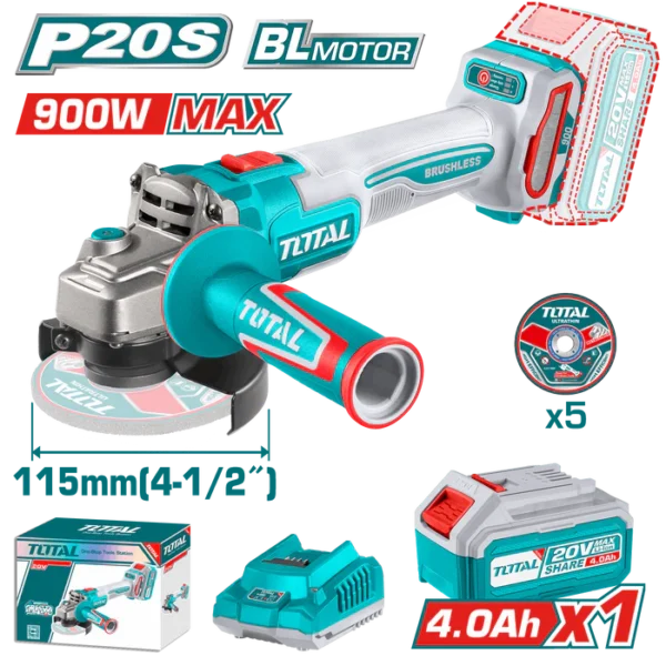 صاروخ توتال 4.5 بوصة 20 فولت 900 وات مع بطارية و شاحن – TAGLI261521