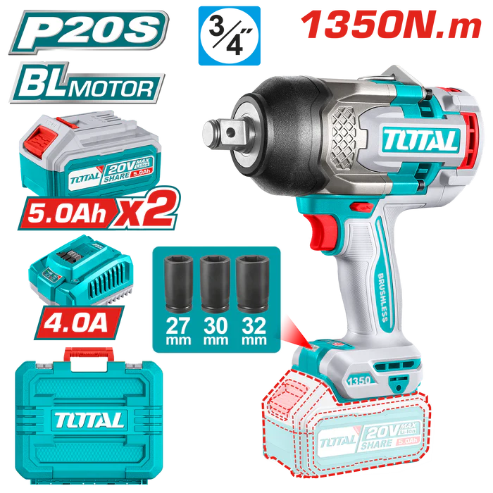دريل توتال 1350 نيوتن 20 فولت ¾ بوصة مع 2 بطارية 5 امبير و شاحن – TIWLI20135