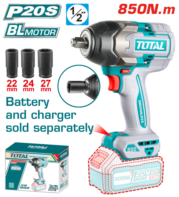 دريل توتال 850 نيوتن 20 فولت بدون بطارية و شاحن – TIWLI20851