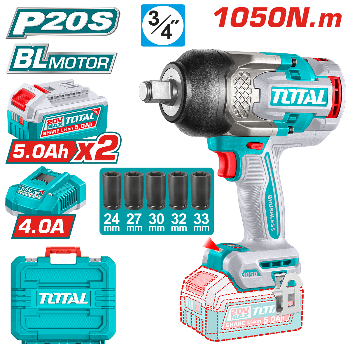 دريل 1050 نيوتن 20 فولت مع 2 بطارية 5 أمبير و شاحن توتال – TIWLI20105
