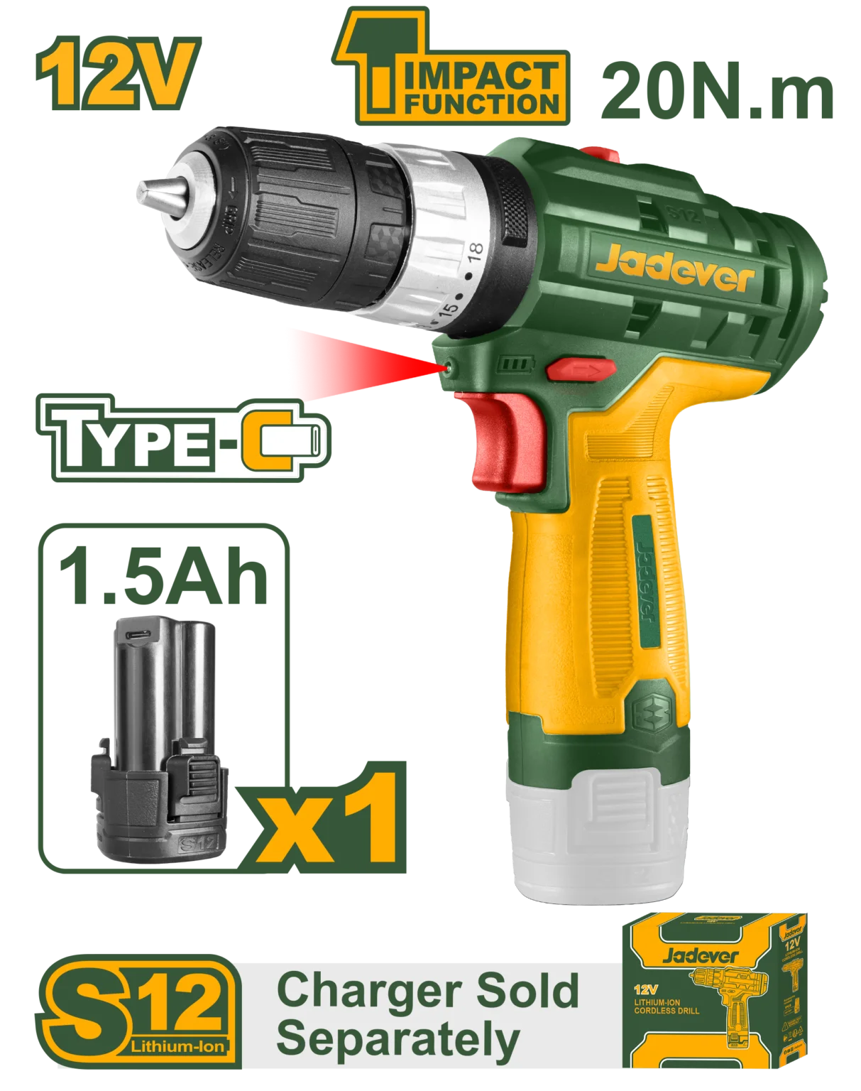شنيور بطارية 12 فولت 1 بطارية دقاق 20 نيوتن سرعات بدون شاحن ( Type C ) – JDCDS540