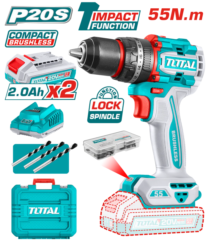 شنيور توتال 20 فولت 55 نيوتن دقاق مع 2 بطارية و شاحن – TIDLI20558