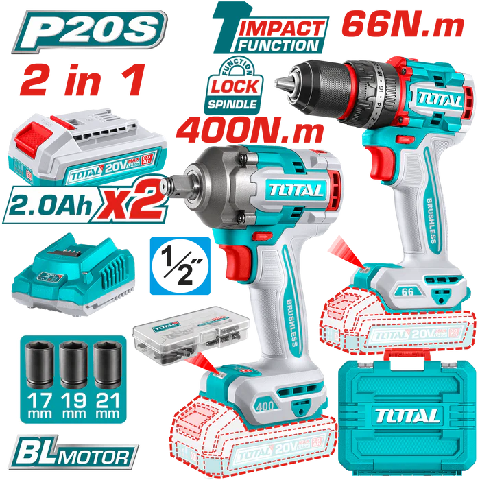 طقم كومبو توتال 20 فولت شنيور توتال 66 نيوتن مع دريل توتال 400 نيوتن – TCKLI20275