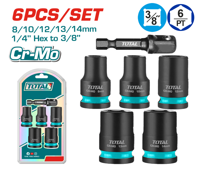 طقم لقم تصاديمة 3/8 بوصة مع ادابتور 6 قطع توتال – THKISD38062